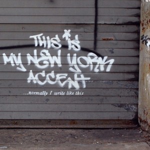 posted by nevereatshreddedwheat #flag as inappropriateHere is the location of number 2 in Banksy's October 2013 New York series. It's a graffiti tag that says "THIS IS MY NEW YORK ACCENT ...normally I write like this." I probably don't need to say it, but none of these will last very long. instagram.com/banksyny