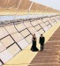 This solar thermal plant uses parabolic troughs to generate heat, then steam, then power.